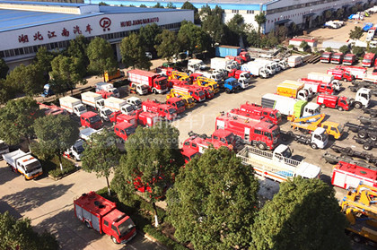 消防車現(xiàn)車停放在停車場(chǎng),每輛消防車經(jīng)過嚴(yán)格的測(cè)試,保障消防車的品質(zhì)。